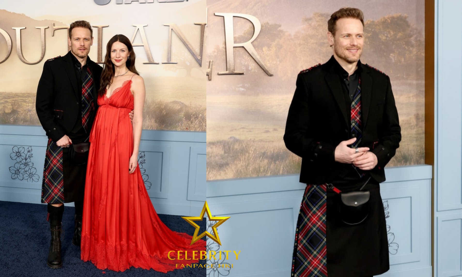 Sam Heughan Wears Traditional Scottish Kilt to ‘Outlander’ Season 8 Premiere with Caitriona Balfe