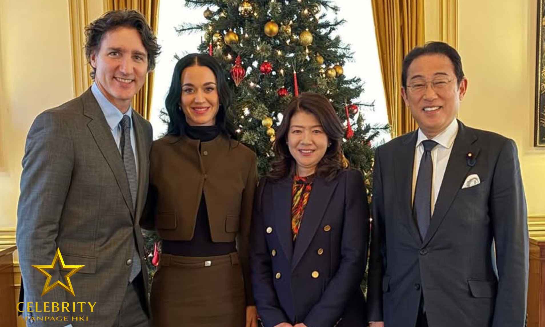 Katy Perry e Justin Trudeau visitam juntos o ex-primeiro-ministro do Japão.