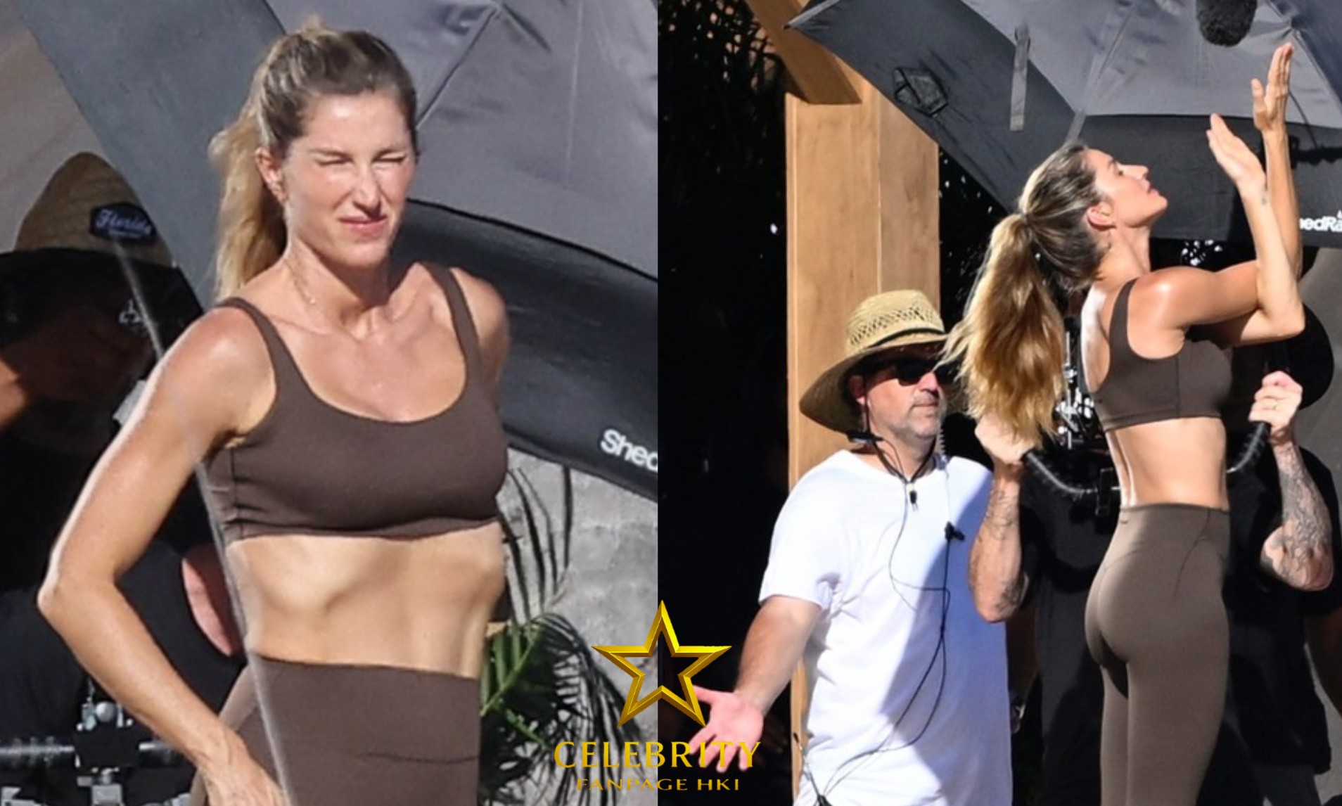 Gisele Bündchen exibiu sua figura esculpida em um conjunto de treino marrom enquanto filmava um…