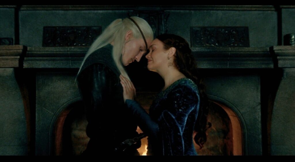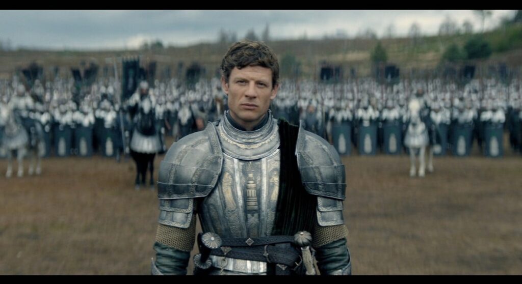 As fotos mostram James Norton como o novo personagem Lorde Ormund Hightower, Emma D’Arcy como Rhaenyra Targaryen, Olivia Cooke como Alicent Hightower e Ewan Mitchell como Aemond Targaryen.