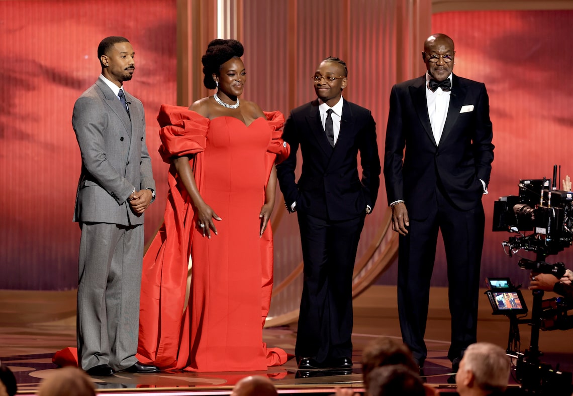 Michael B. Jordan, Wunmi Mosaku, Miles Caton and Delroy Lindo speak onstage during the 32nd Annual Actor Awards.