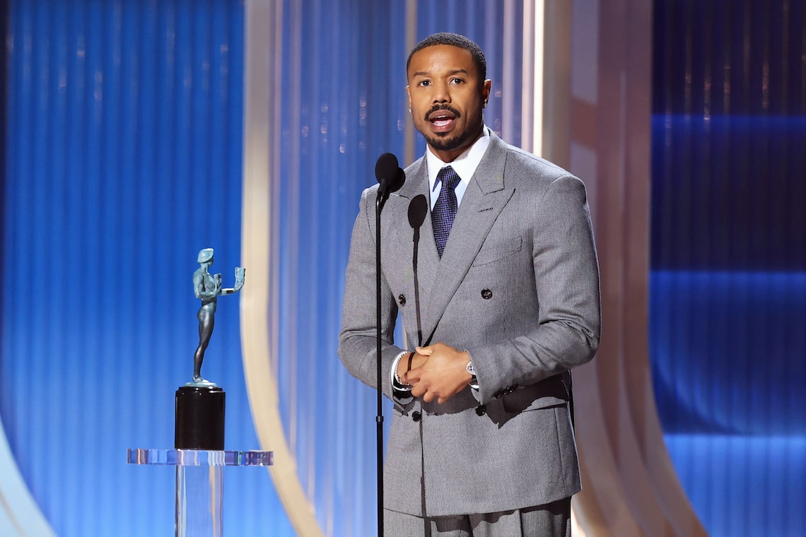 Michael B. Jordan accepts the Outstanding Performance by a Male Actor in a Leading Role Award for “Sinners” onstage during the 32nd Annual Actor Award.