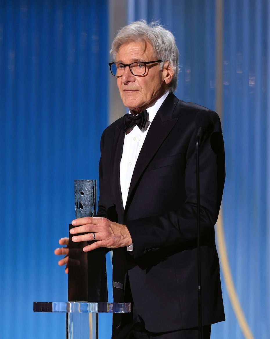 Harrison Ford accepts the Screen Actors Guild Life Achievement Award onstage during the 32nd Annual Actor Awards.
