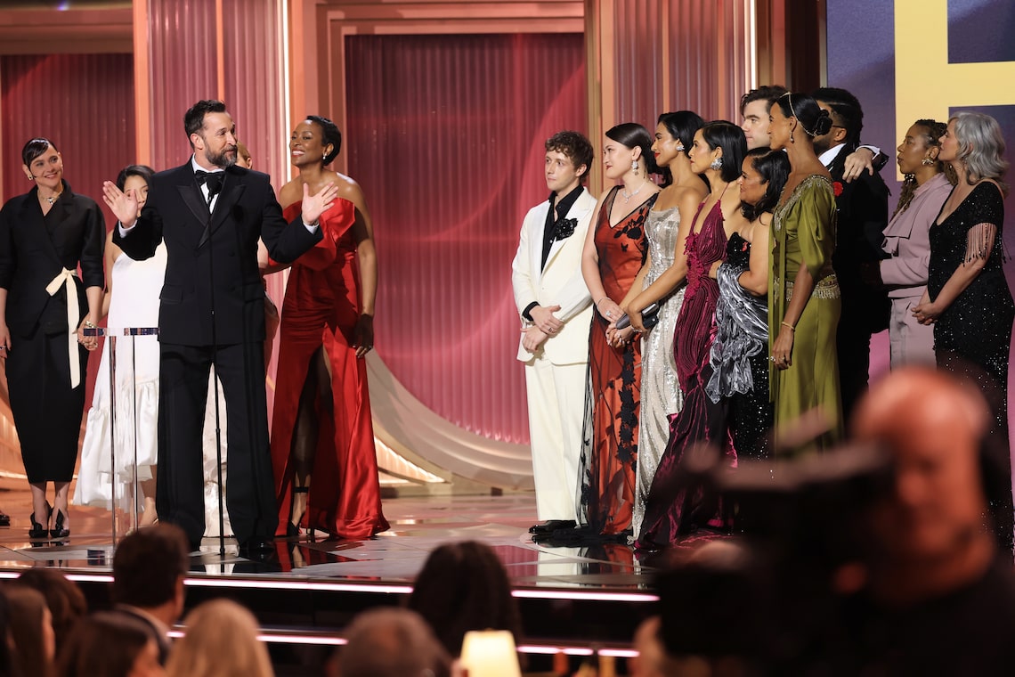 Taylor Dearden, Patrick Ball, and Noah Wyle accept the Outstanding Performance by an Ensemble in a Drama Series Award for “The Pitt” onstage during the 32nd Annual Actor Awards.