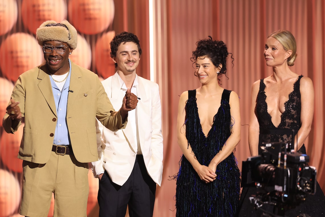 Tyler, The Creator, Timothée Chalamet, Odessa A’zion, and Gwyneth Paltrow speak onstage during the 32nd Annual Actor Awards.