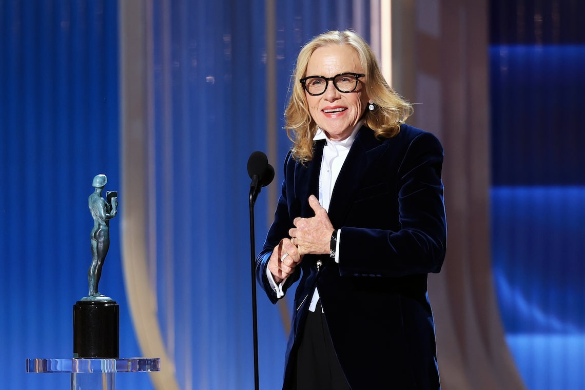 Amy Madigan accepts the Outstanding Performance by a Female Actor in a Supporting Role Award for “Weapons” onstage during the 32nd Annual Actor Awards.