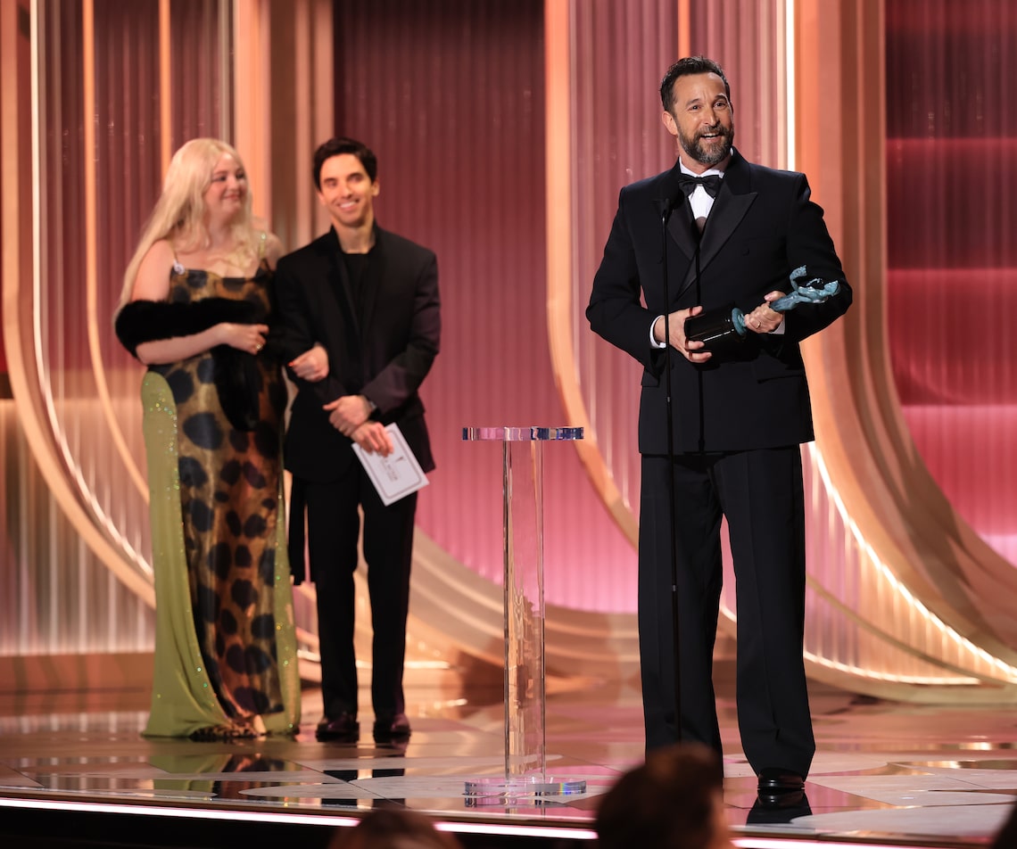 Megan Stalter and Paul W. Downs present the Outstanding Performance by a Male Actor in a Drama Series Award for “The Pitt” to Noah Wyle onstage during the 32nd Annual Actor Awards.