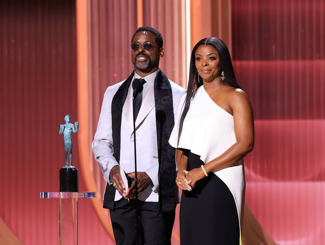 Sterling K. Brown and Janelle James speak onstage during the 32nd Annual Actor Awards.