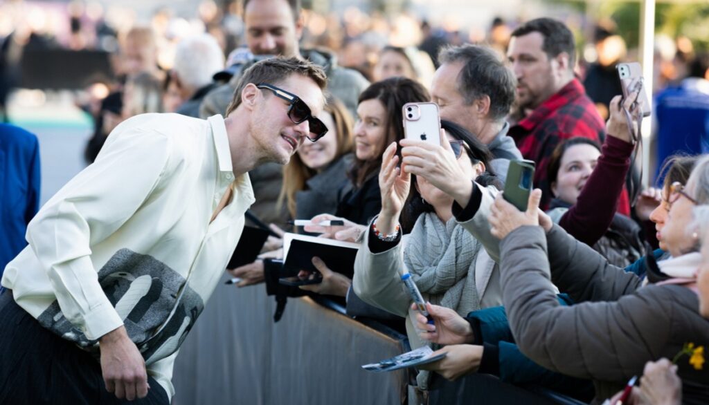 Alexander Skarsgard usa camisa com dildo na estreia de “Pillion”, fala sobre sexualidade e suas próprias experiências com BDSM