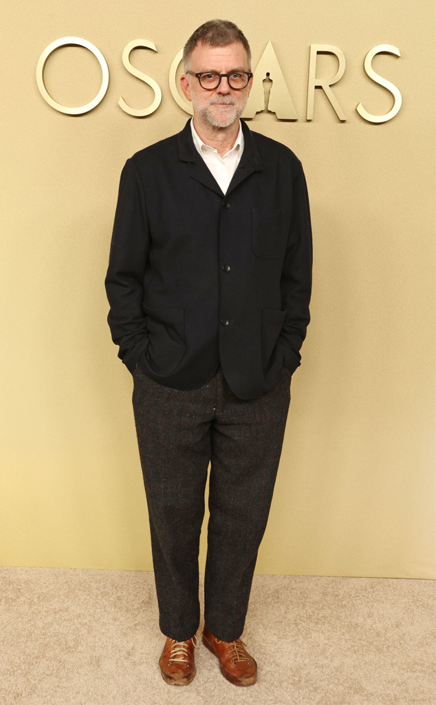 O aclamado diretor chegou ao almoço dos indicados ao Oscar para celebrar as 13 indicações de “Uma Batalha Após a Outra”.