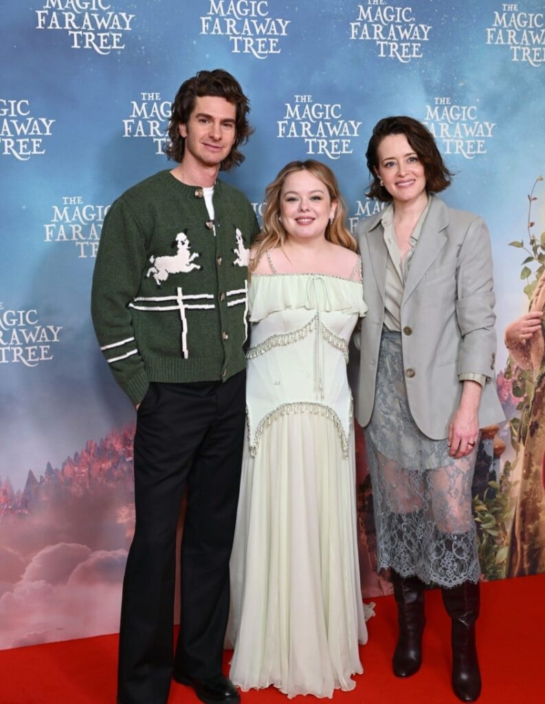 The upcoming movie follows “Polly (Foy), Tim (Garfield) and their three children – a modern family forced to relocate to the remote English countryside. As they adapt to their new lives, the children discover a magical tree and its extraordinary and eccentric residents including treasured characters Moonface (Anozie), Silky (Coughlan), Dame Washalot (Gunning) and Saucepan Man (Demri-Burns). At the top of the tree, they are transported to spectacular and fantastical lands and, through the joys and challenges of their adventures, the family learn to reconnect and value each other for the first time in years.”