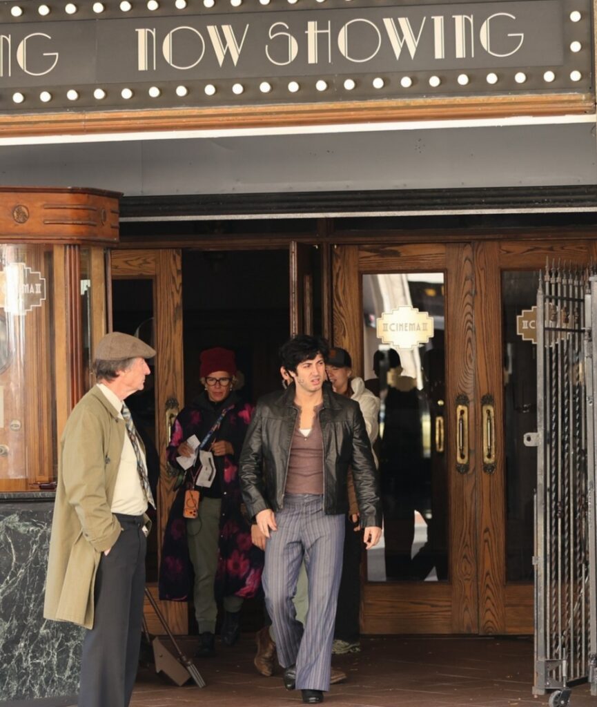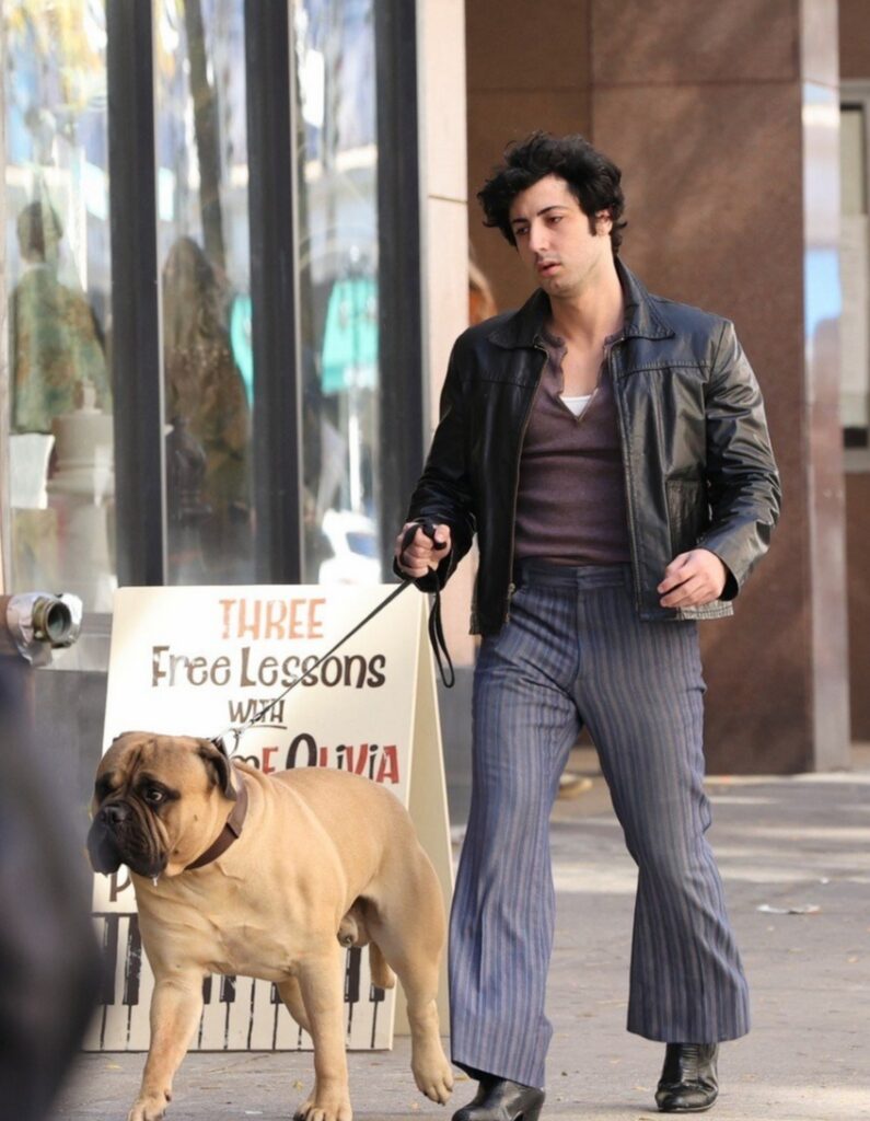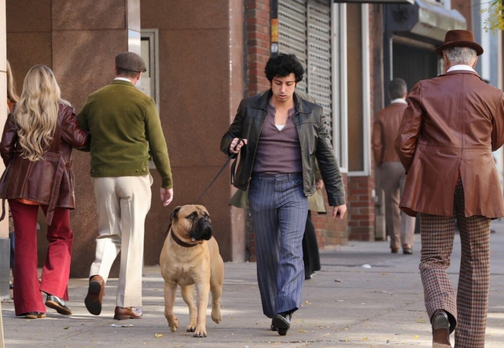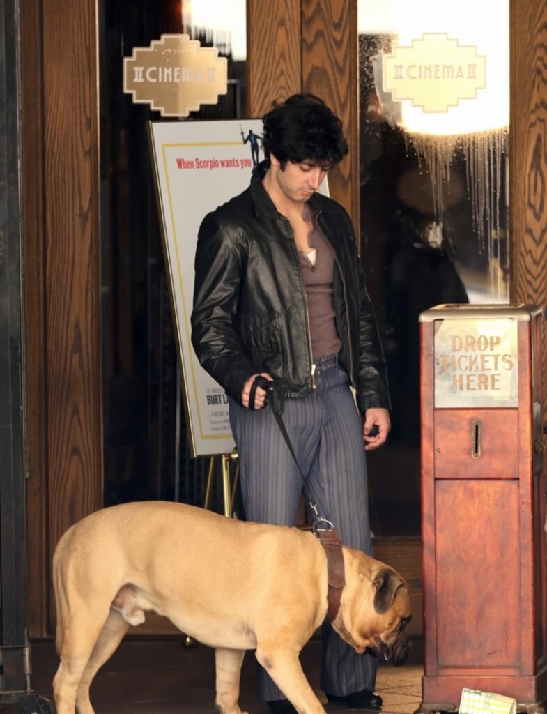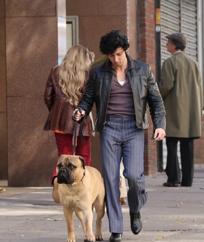 O ator de 26 anos de “The Offer” foi visto filmando cenas de passeio com um adorável Bullmastiff, que se acredita estar interpretando Butkus Stallone, o animal de estimação de Sylvester Stallone na vida real, que também apareceu nos filmes originais de “Rocky”.