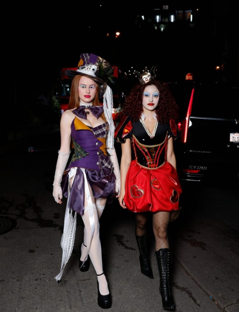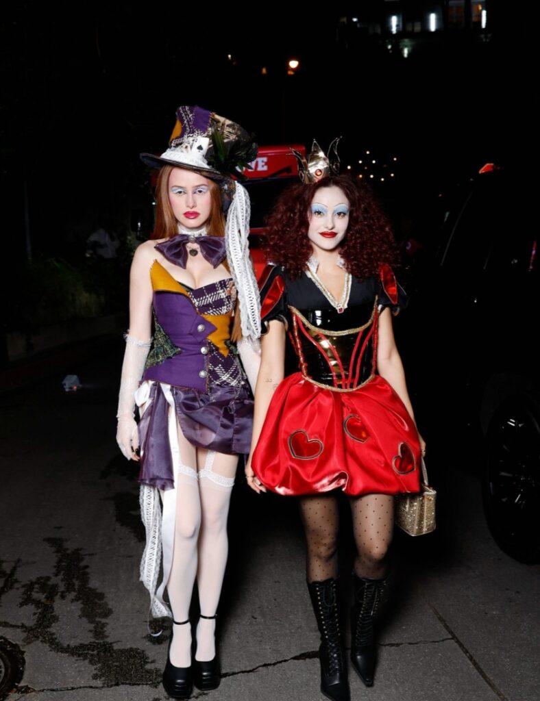 Camila estava vestida de Rainha de Copas, enquanto Madelaine se fantasiou de Chapeleiro Maluco.