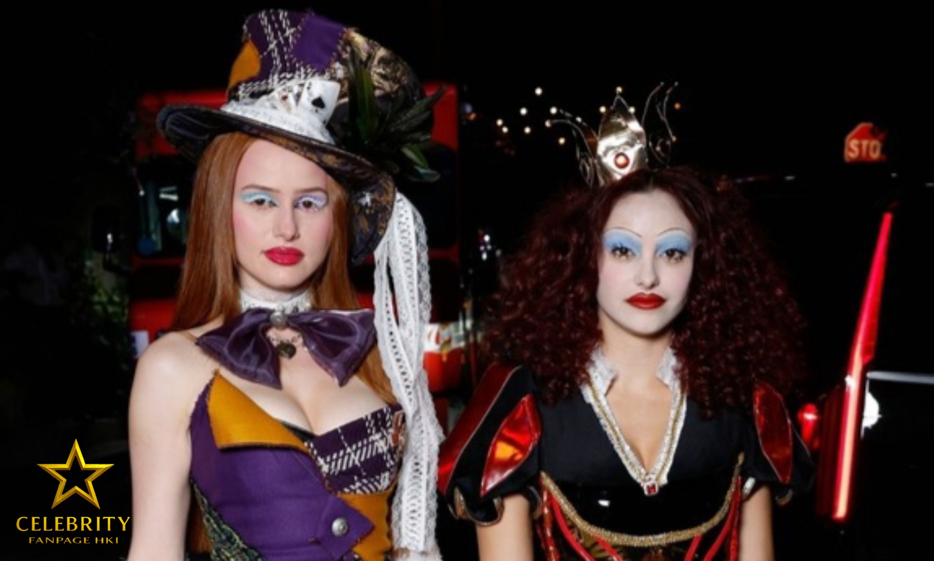 As atrizes Camila Mendes e Madelaine Petsch, de Riverdale, usam fantasias de Halloween combinando com o tema ‘Alice no País das Maravilhas’.