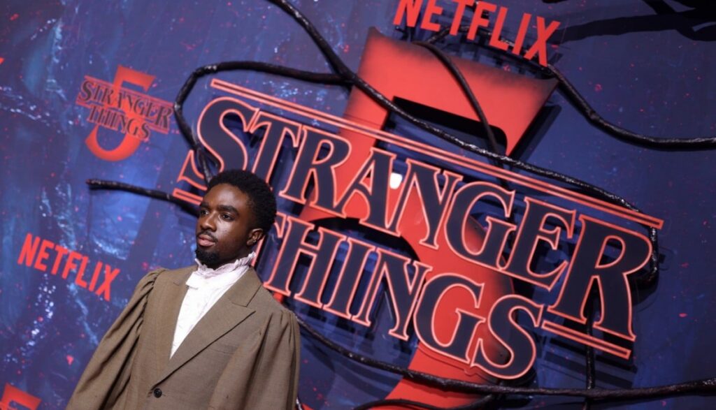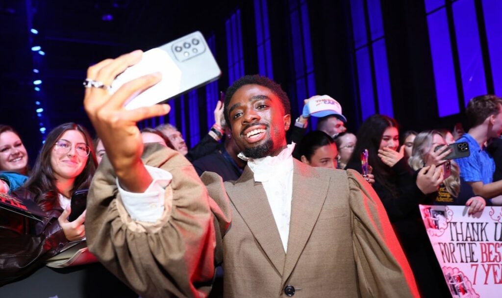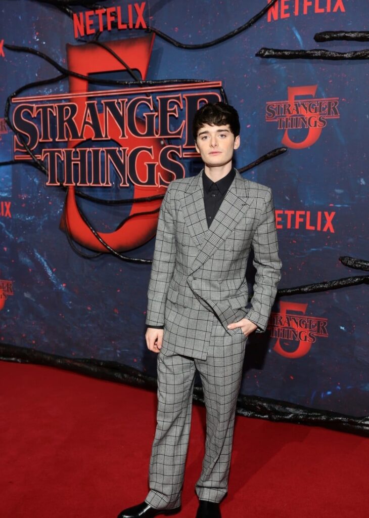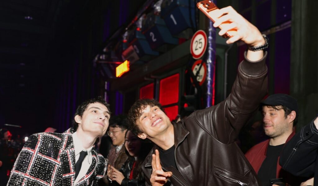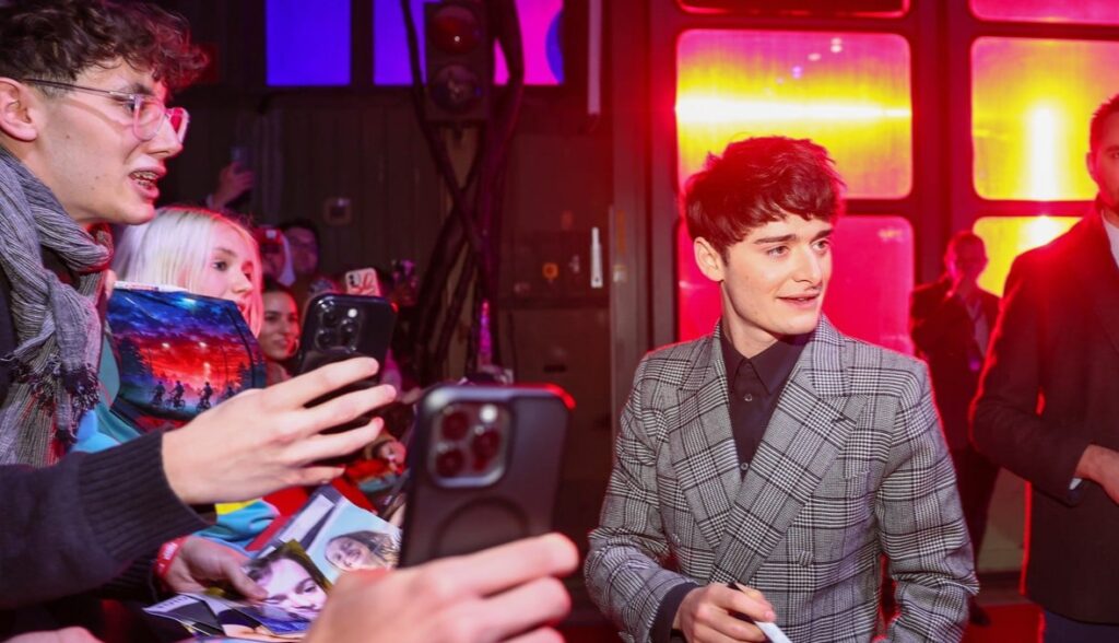 Uma conta de fãs de Stranger Things no Twitter estava presente e compartilhou um vídeo dos rapazes entrando em meio a uma nuvem de fumaça vermelha enquanto o tema icônico da série tocava.