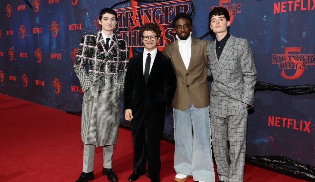 Noah Schnapp, Finn Wolfhard, Caleb McLaughlin e Gaten Matarazzo se encontraram em um evento na Alemanha na terça-feira (18 de novembro).