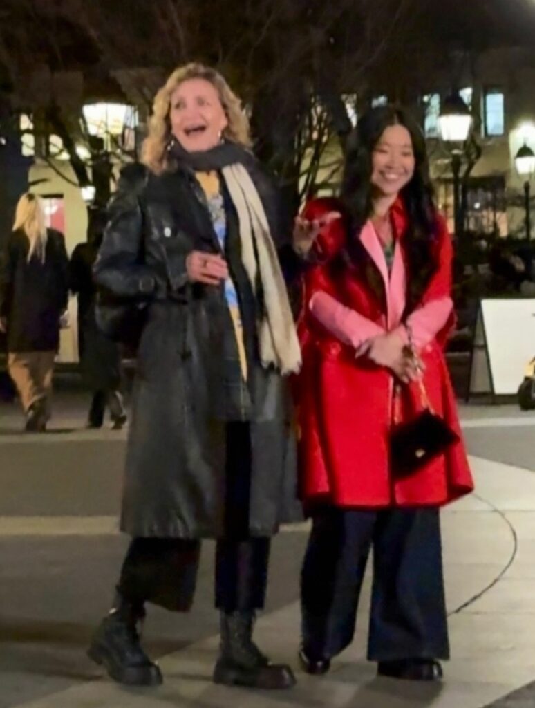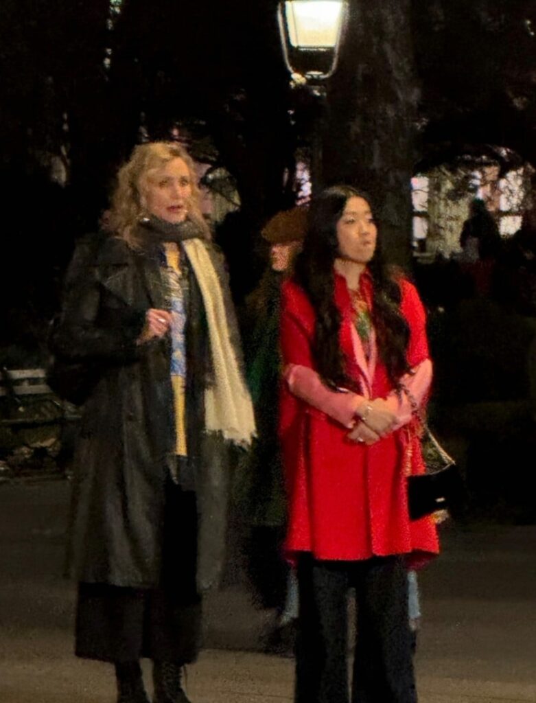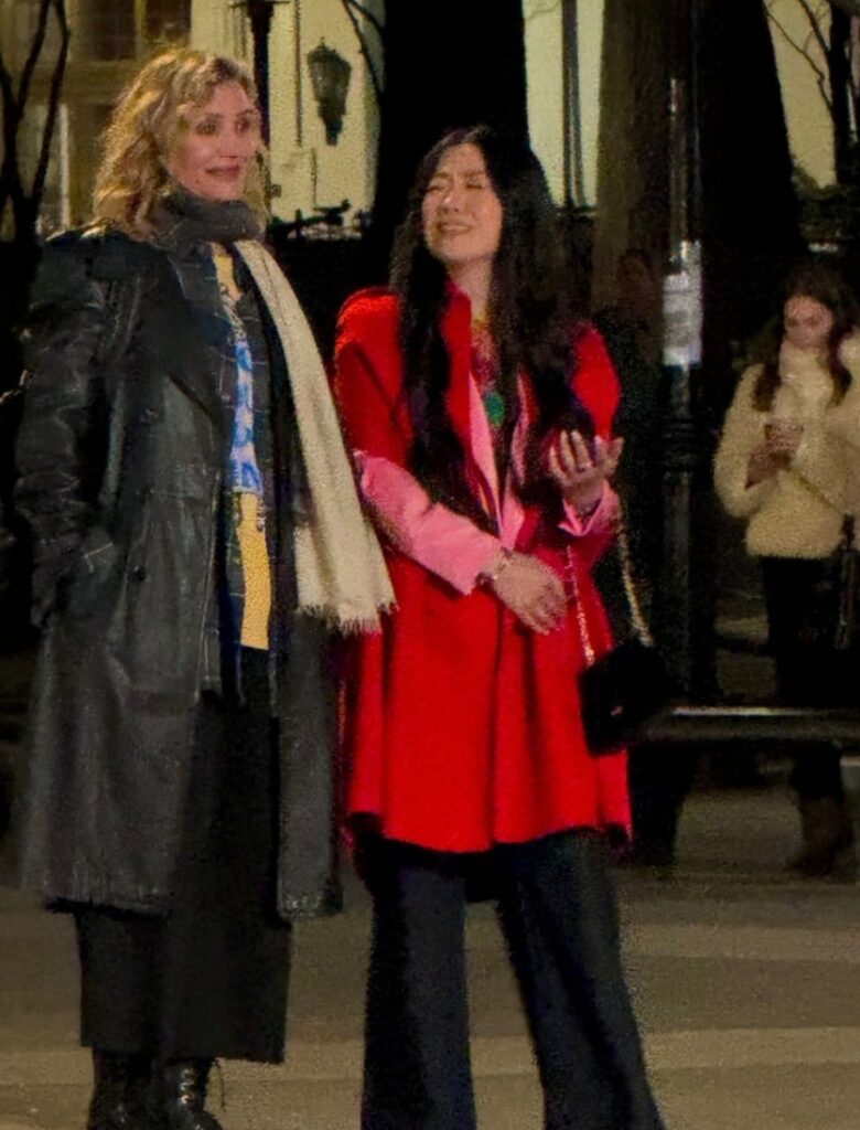 The 53-year-old actress and co-star Sherry Cola shared a laugh as they filmed scenes for an upcoming rom-com at Washington Square Park on Thursday night (April 9) in New York City.