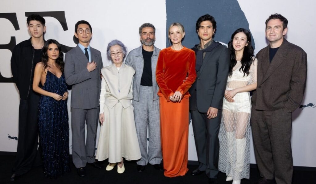 Here’s a synopsis: “BEEF returns with a new cast and a new ‘beef,’ as a Gen-Z couple witnesses an alarming fight between their Millennial boss and his wife. Newly-engaged Ashley Miller (Cailee Spaeny) and Austin Davis (Melton), both lower-level staff at a country club, become entangled in the unraveling marriage of their General Manager, Joshua Martín (Isaac), and his wife, Lindsay Crane-Martín (Mulligan). Through favors and coercion, both couples vie for the approval of the elitist club’s billionaire owner, Chairwoman Park (Youn Yuh-jung), who struggles to manage her own scandal involving her second husband, Doctor Kim (Song Kang-ho).”