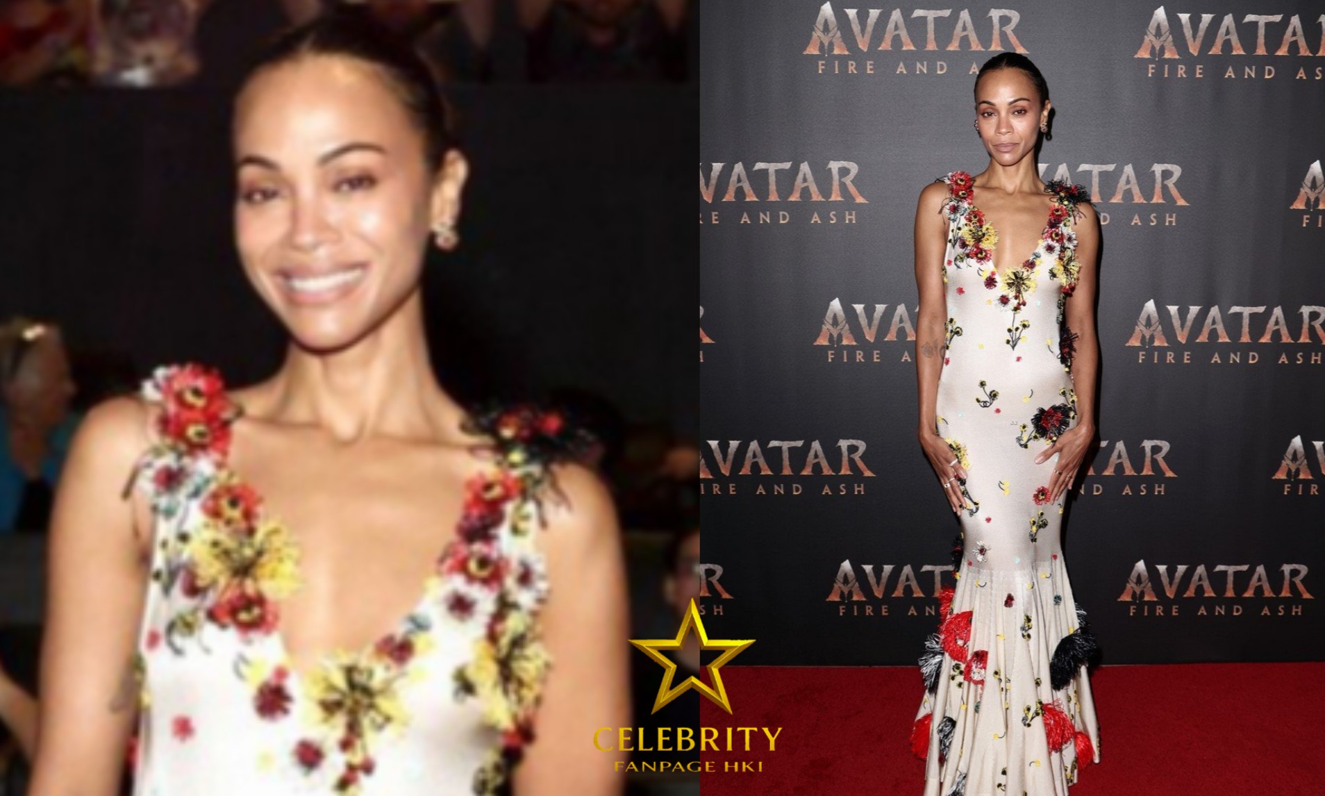 Zoe Saldaña arrasa em vestido floral na exibição de ‘Avatar: Fogo e Cinzas’ em Miami.