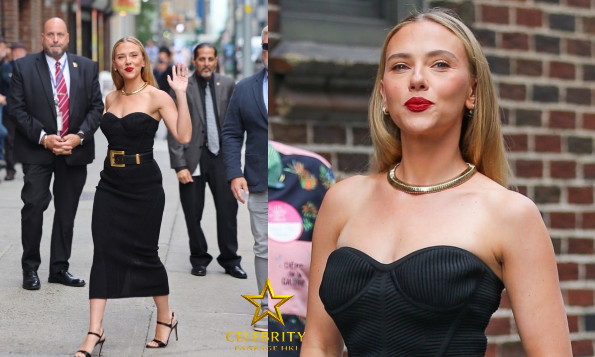Scarlett Johansson está radiante em um elegante vestido preto sem alças! A estrela de Viúva…