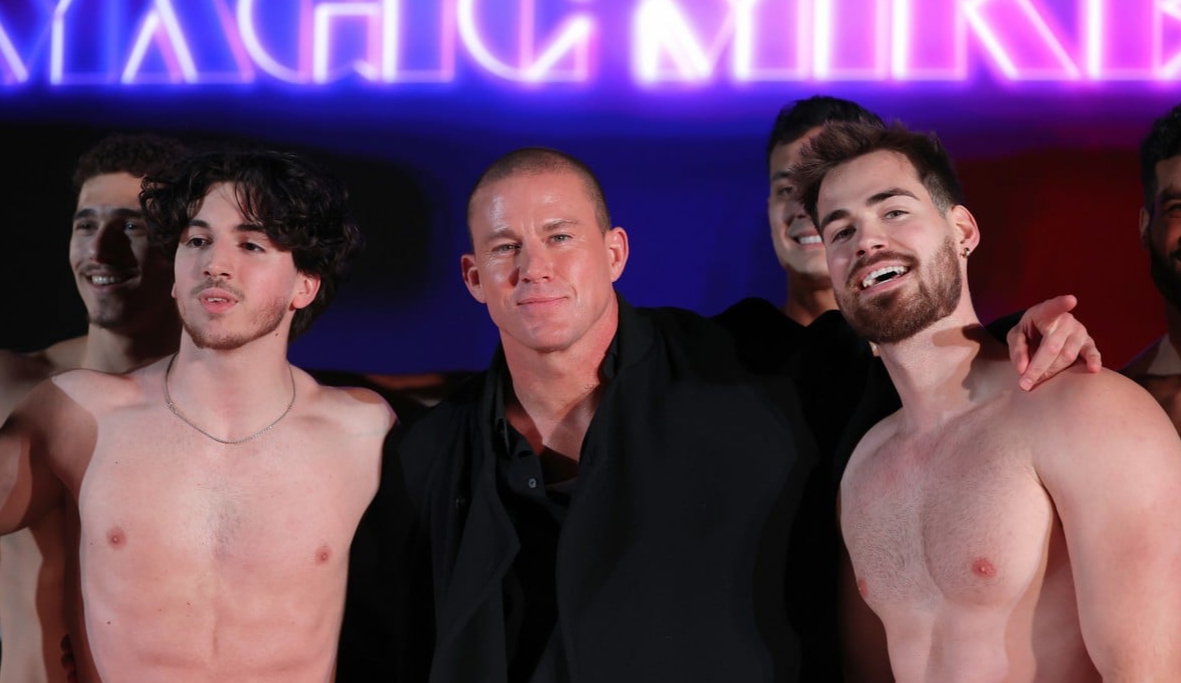 Channing Tatum posa com rapazes sarados sem camisa para anunciar a chegada de ‘Magic Mike Live’ a Nova York.