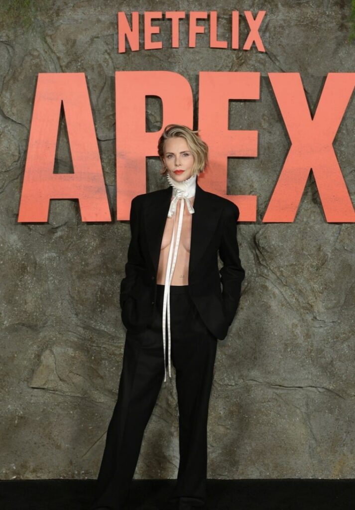 Charlize Theron Goes Topless Under Blazer for ‘Apex’ Premiere in NYC