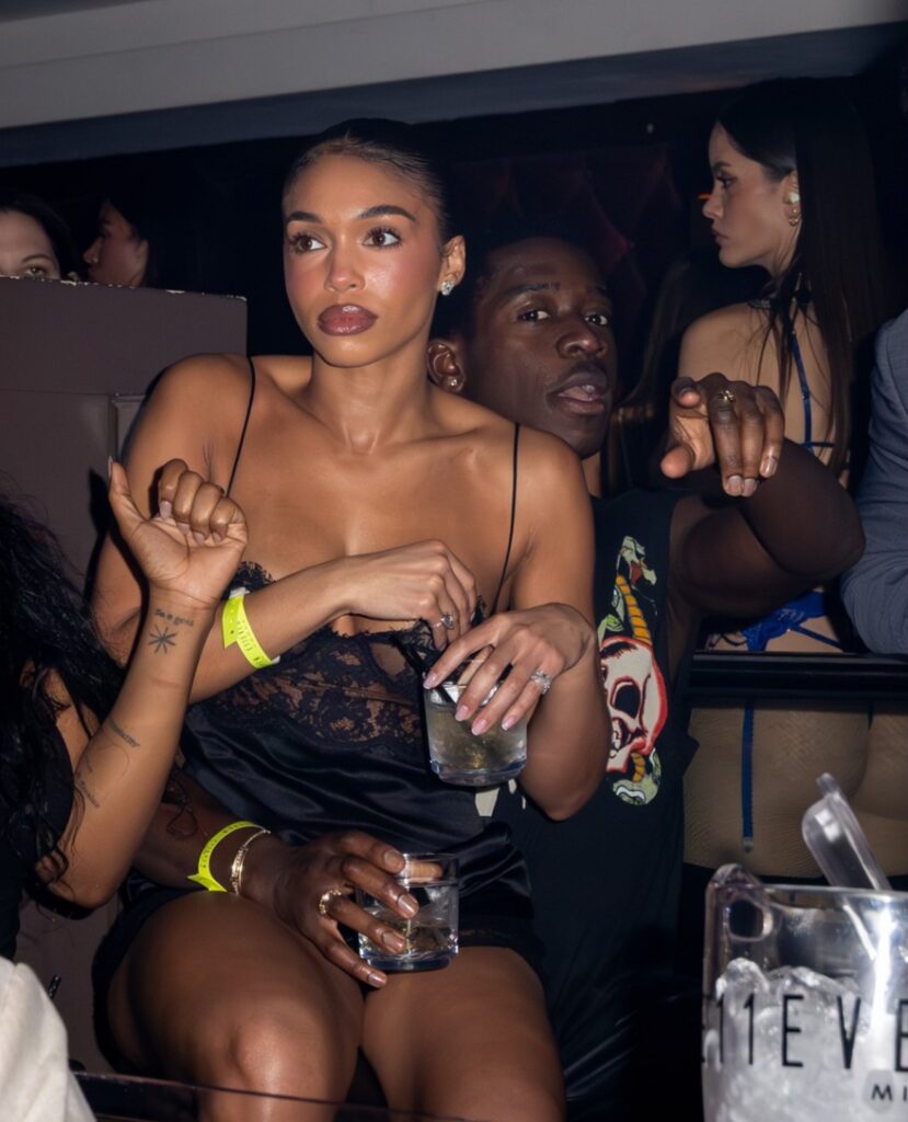 Lori, que é modelo e filha de Steve Harvey, foi flagrada sentada no colo do ator nas fotos enquanto assistiam à apresentação de 50 Cent.