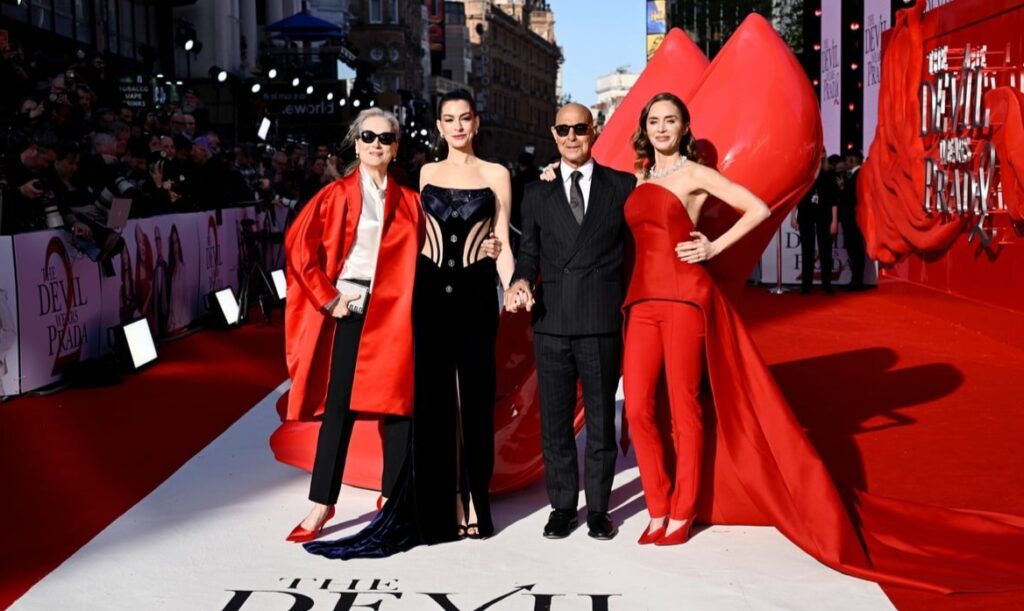The star studded cast – Meryl Streep, Anne Hathaway, Emily Blunt, and Stanley Tucci – stepped out for the European Premiere on Wednesday (April 22) in London, England.