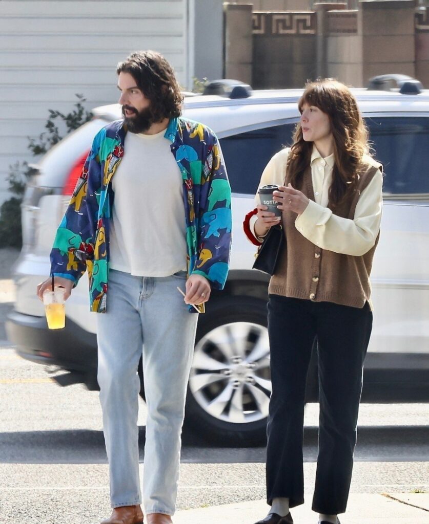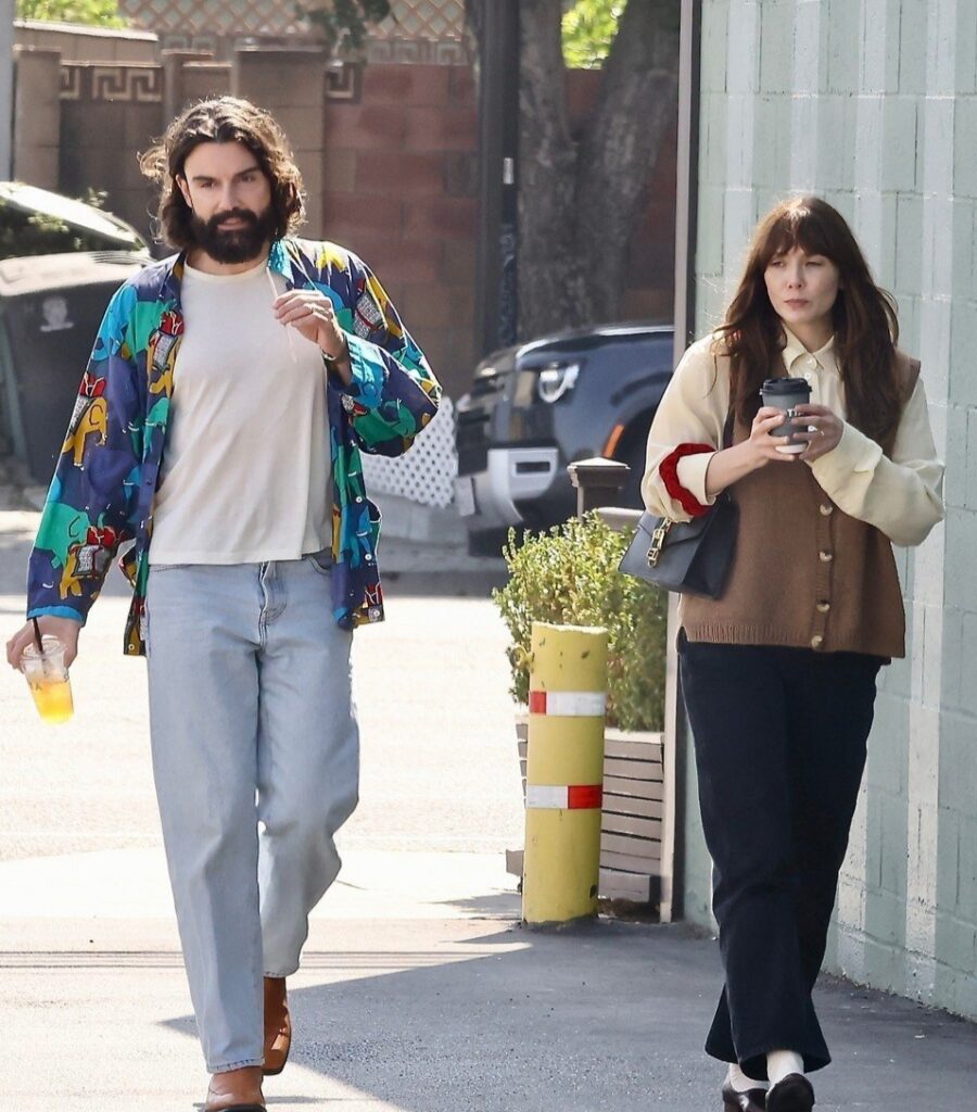 Para o passeio, Elizabeth usou um suéter marrom sobre uma camisa amarela de botões e calça jeans preta, enquanto o músico de 33 anos usou uma camisa colorida desabotoada sobre uma camiseta branca e calça jeans clara.