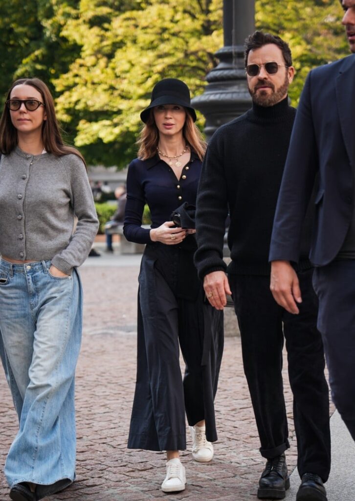 Emily estava acompanhada de seu colega de elenco em O Diabo, Justin Theroux, e sua esposa, Nicole Brydon Bloom, enquanto exploravam a cidade.
