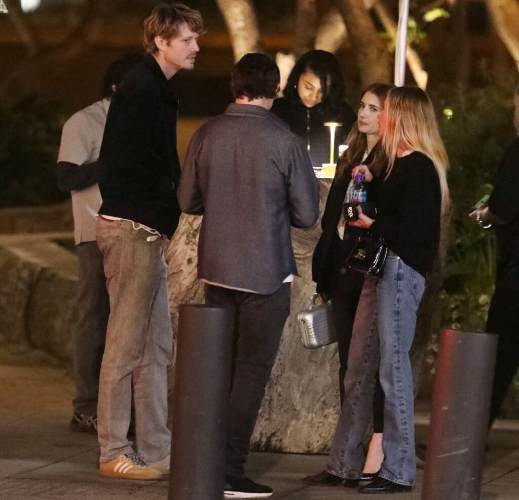 Tanto Emma quanto Ashley estavam vestidas de forma casual para a noite, e os rapazes também. Parecia que todos estavam usando jeans e se divertindo bastante!
