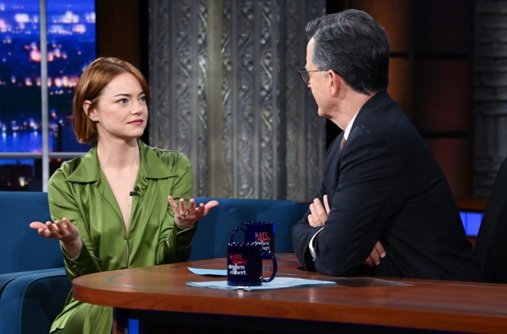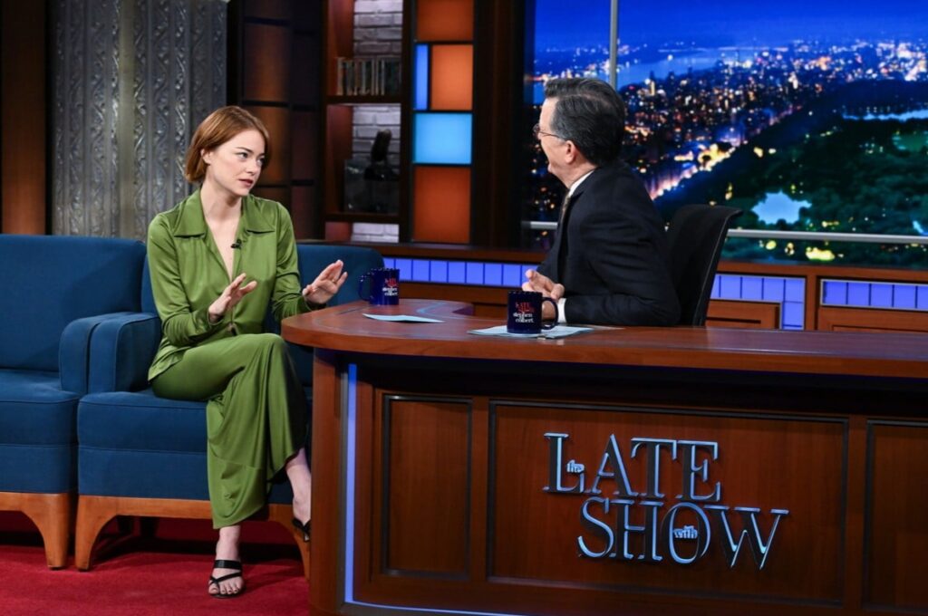 Emma estava no programa para promover seu novo filme, Bugonia, que estreia nos cinemas neste fim de semana.