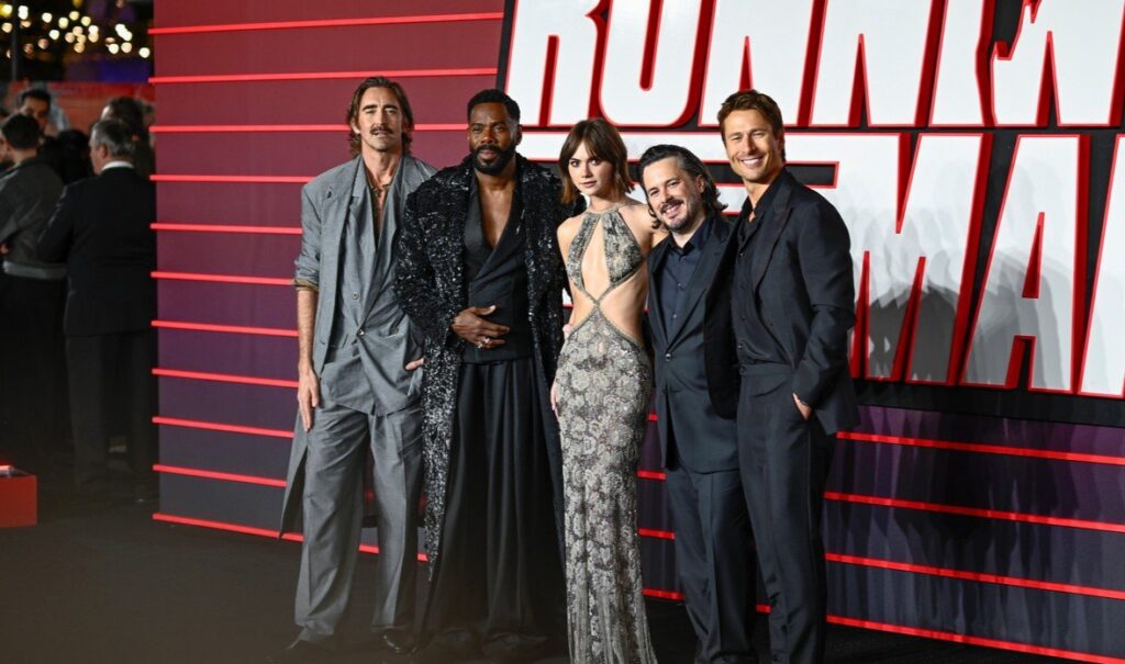 Glen Powell e Colman Domingo se juntam aos colegas de elenco de ‘Running Man’ na estreia do filme no Reino Unido!