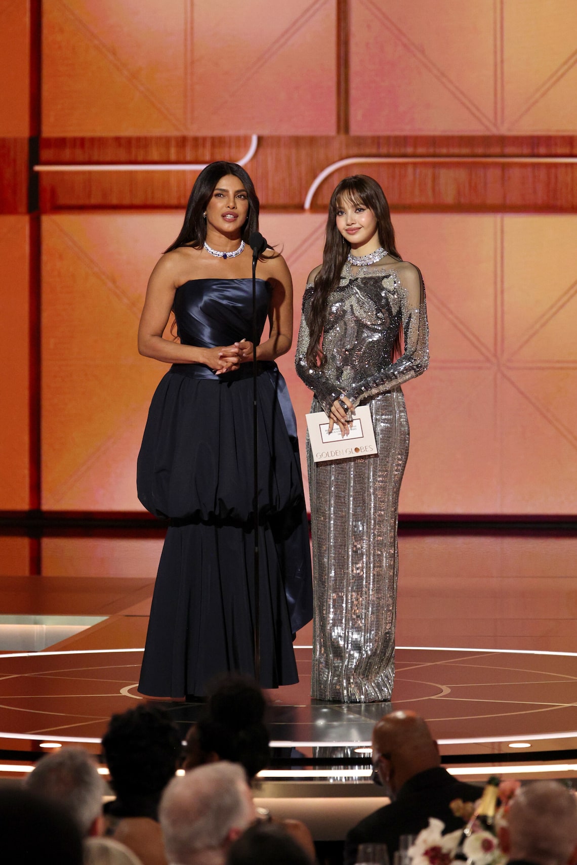 Priyanka Chopra Jonas e Lisa falam no palco durante a 83ª edição do Globo de Ouro Anual.