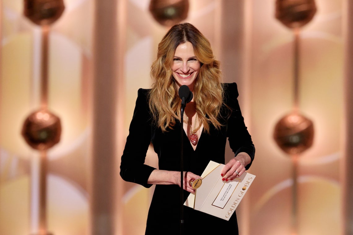 Julia Roberts fala no palco durante a 83ª edição do Globo de Ouro.