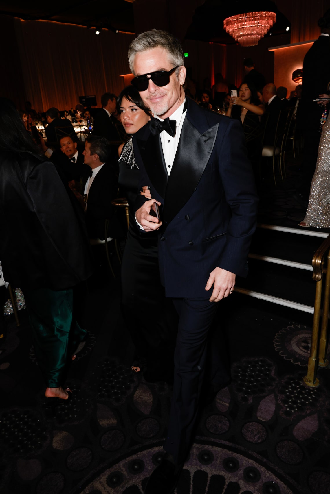 Ana de Armas e Chris Pine falam no palco durante a 83ª edição do Globo de Ouro.