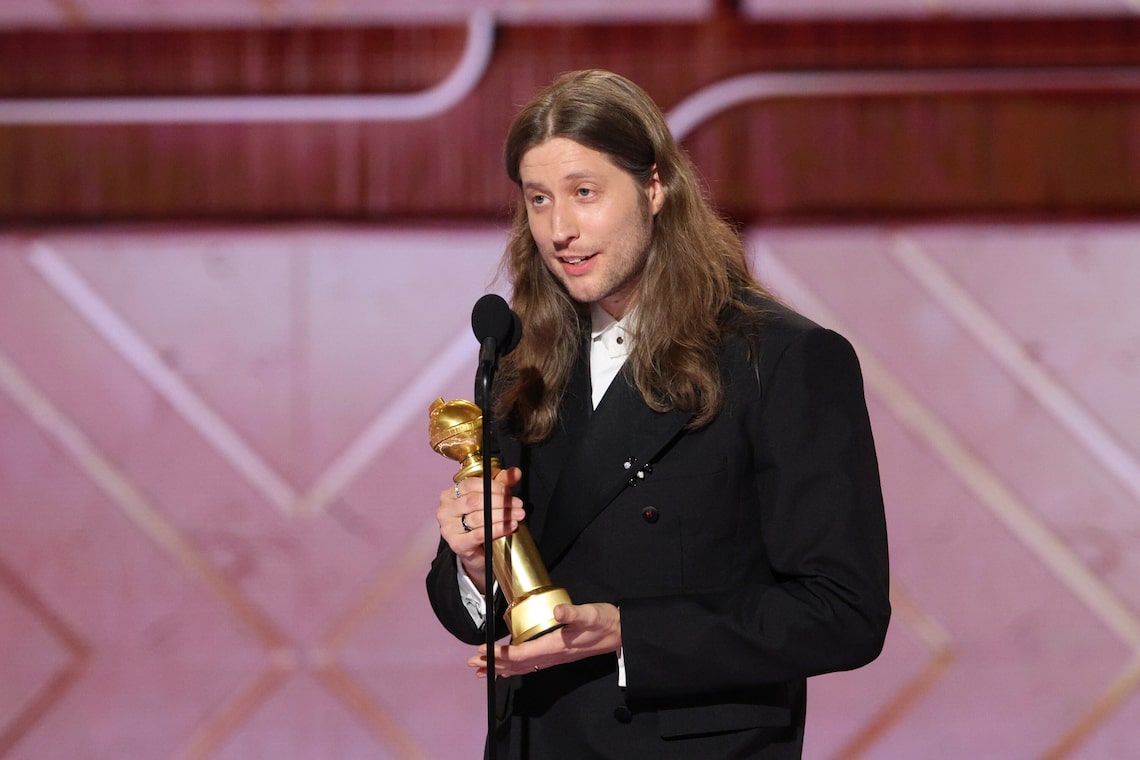 Ludwig Goransson recebe o prêmio de Melhor Trilha Sonora Original – Filme por “Sinners” no palco durante a 83ª edição anual do Globo de Ouro.