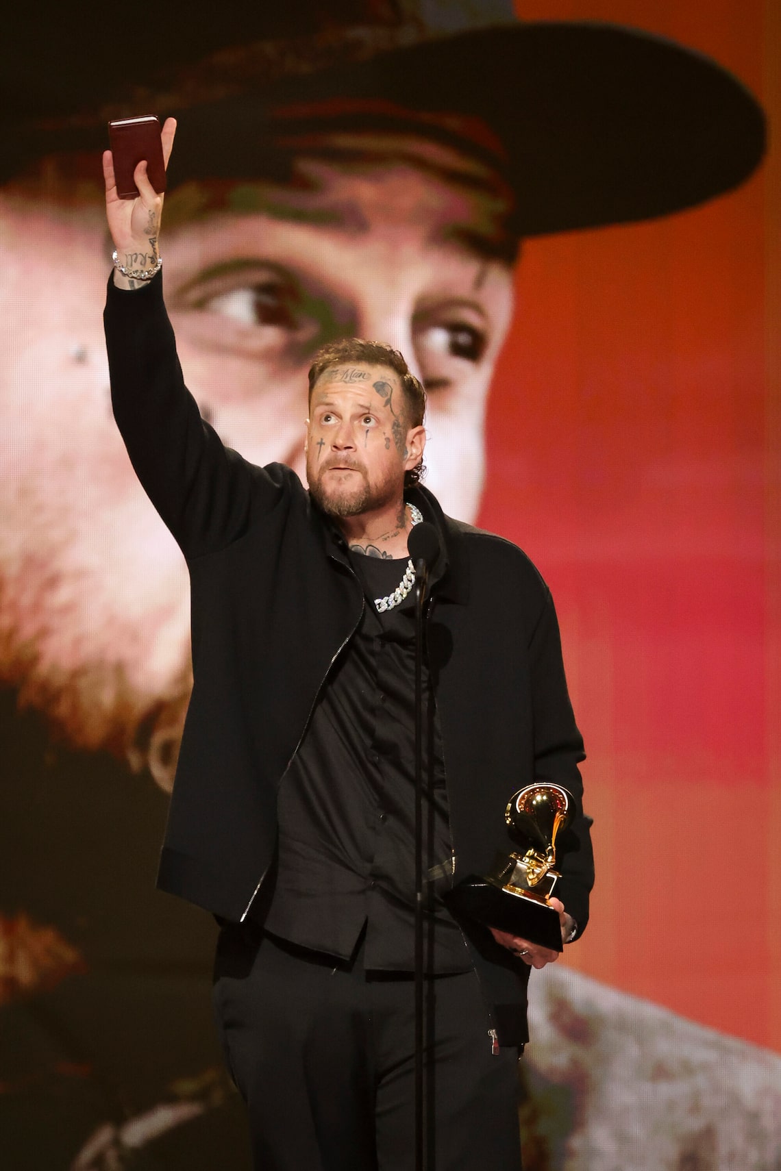 Jelly Roll recebe o prêmio de Melhor Álbum de Música Country Contemporânea na 68ª edição do Grammy Awards.