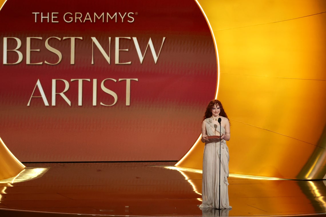 Chappell Roan entrega o prêmio de Melhor Artista Revelação para Olivia Dean na 68ª edição anual do GRAMMY Awards.
