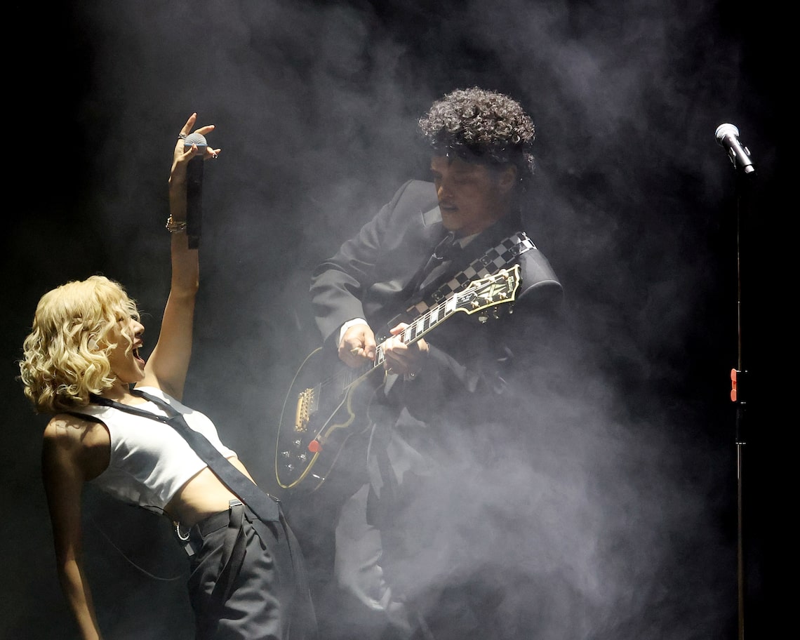 Rosé e Bruno Mars se apresentam no palco durante a 68ª edição do GRAMMY Awards.