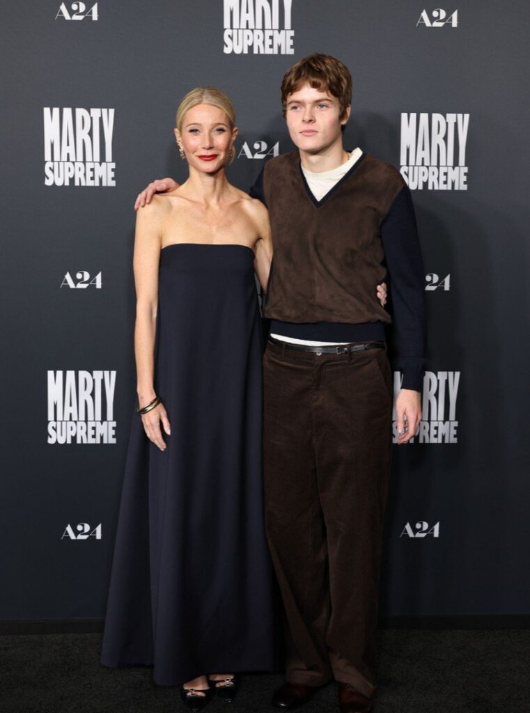 Gwyneth Paltrow posa com o filho Moses Martin e o marido Brad Falchuk na estreia de ‘Marty Supreme’ em Los Angeles!