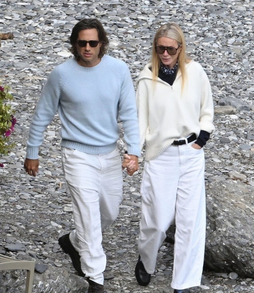 Gwyneth foi fotografada abraçando o marido por trás e imagens adicionais os mostraram caminhando de mãos dadas. Ambos pareciam vestidos para o clima mais frio, com suéteres de manga comprida e calças de linho. Eles comemoraram seu sétimo aniversário de casamento em 29 de setembro.