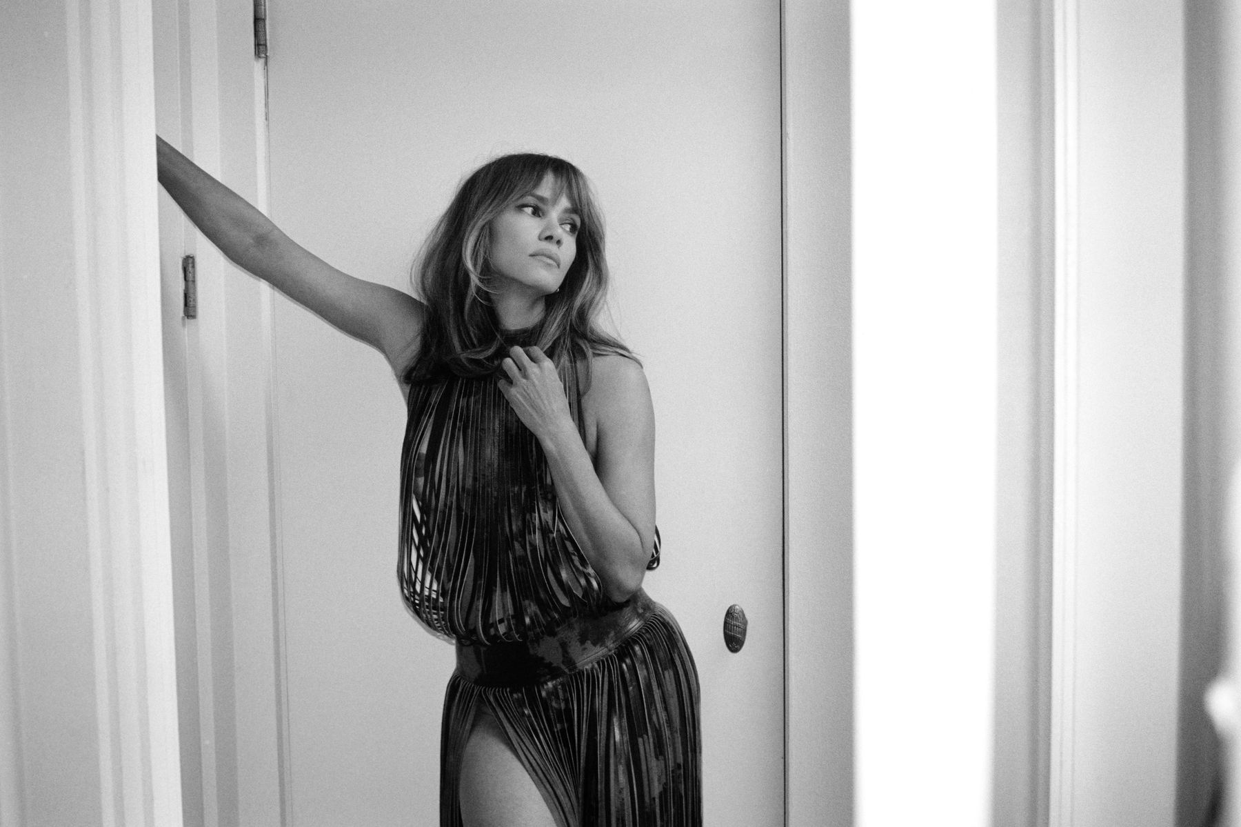 “Depois do meu terceiro divórcio, as pessoas começaram a dizer: ‘O que há de errado com ela? Ela é louca. Ela não consegue manter um homem’”, relembra. “E eu sempre argumentava: ‘Quem disse que eu quero ficar com um homem se ele não for o homem certo?’” (Aparentemente, Berry parece perfeitamente feliz com Hunt. “Estou no melhor relacionamento que já tive”, diz ela. Os dois se conheceram durante a pandemia de COVID em 2020, apresentados pelo irmão de Hunt. Eles trocaram mensagens e conversaram por telefone durante quatro meses antes do primeiro encontro pessoalmente.) “Eu praticamente parei de dar entrevistas por uma década porque me cansei da mesma história de sempre”, continua ela. “Era sempre: ‘Pobre Halle — Sem sorte no amor novamente’”. Quando peço que ela crie sua própria manchete para esclarecer a situação, ela fecha os olhos. “Hum. ‘Halle Berry não é uma donzela em apuros’”. Pausa. “‘Halle Berry não é vítima de relacionamentos fracassados’”. Pausa mais longa. “‘Halle Berry nunca disse que a culpa é de outra pessoa’”.
