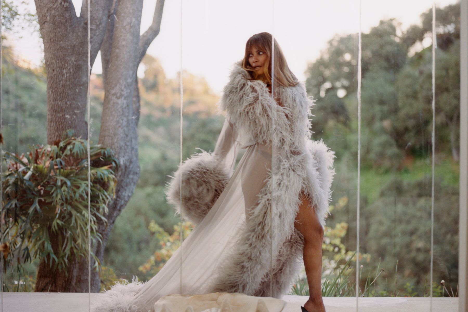 Berry se interessa pelas complexidades de ser uma mulher na meia-idade. “Sempre quis interpretar Angela Davis”, ela me conta. “Cresci durante a época do movimento pelos direitos civis e minha mãe, uma mulher branca com dois filhos negros pequenos, era muito engajada. Era um assunto muito discutido em nosso mundo, em nossa casa: não se calar e lutar.” Este ano, Berry produzirá três séries e sete filmes, e estrelará todos eles. Um desses filmes é Fleur, escrito e dirigido pela cineasta camaronesa-americana Ellie Foumbi, sobre uma dona de casa nova-iorquina em um casamento sem amor que percebe que dedicou décadas de sua vida inteiramente ao marido e aos filhos. “Ela sempre foi submissa e acorda uma manhã pensando: ‘Droga, o que estou fazendo aqui?'” Então, ela vai para Paris para se reinventar como acompanhante de luxo e dominatrix. Tudo isso faz parte do modus operandi de Berry atualmente: “Quero fazer coisas que me empolguem, que me assustem um pouco.”