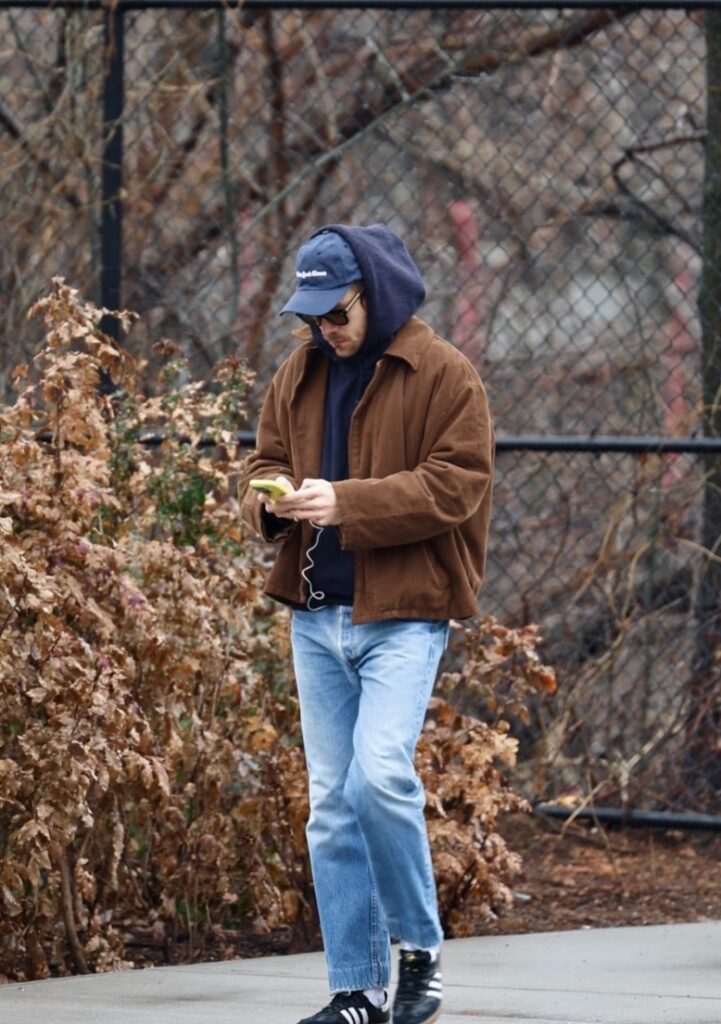 The 32-year-old “Watermelon Sugar” singer checked his phone as he went for a solo walk around a park on Monday afternoon (March 23) in New York City.