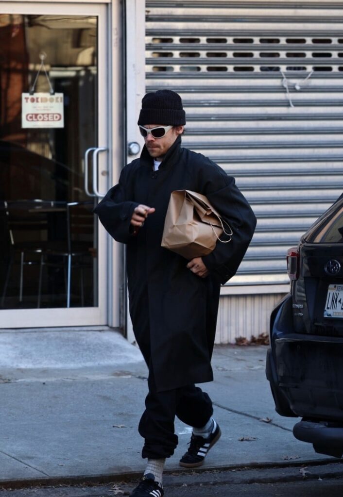 The day before, Harry was seen wearing an all black outfit with white-framed sunglasses as he stepped out to grab some food to go.