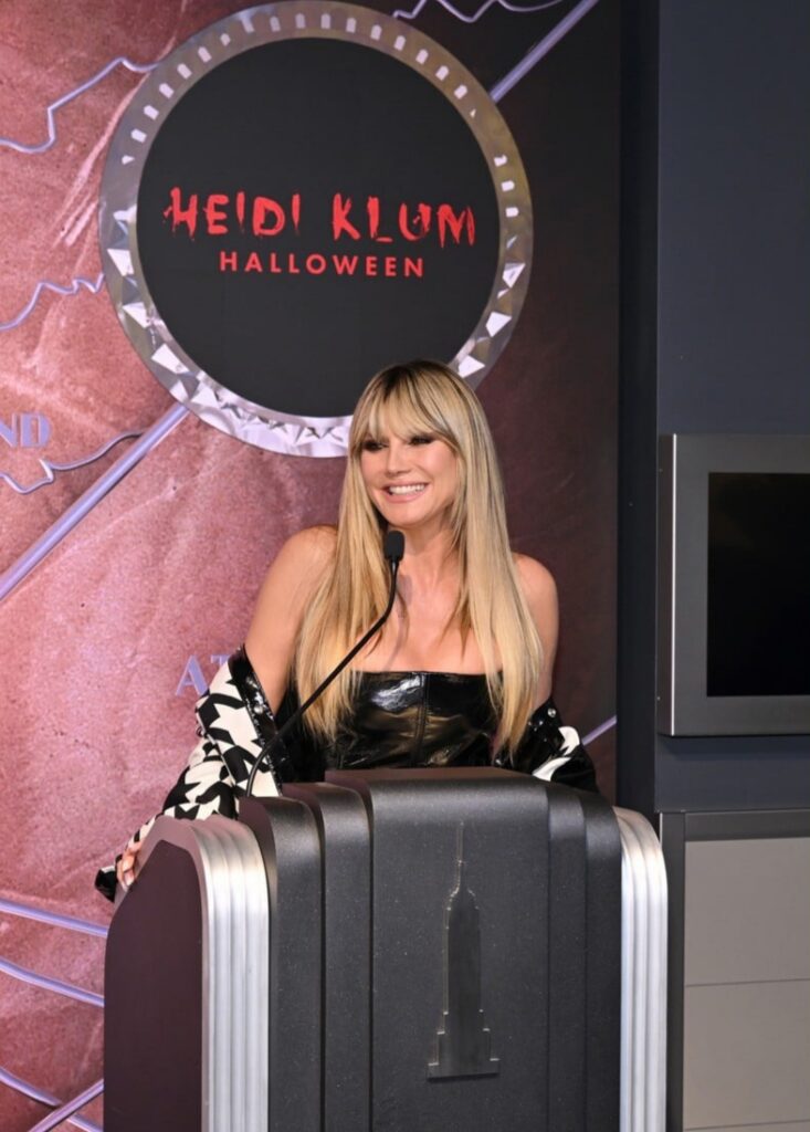 Heidi Klum deu início às celebrações de Halloween visitando o Empire State Building na véspera do feriado.