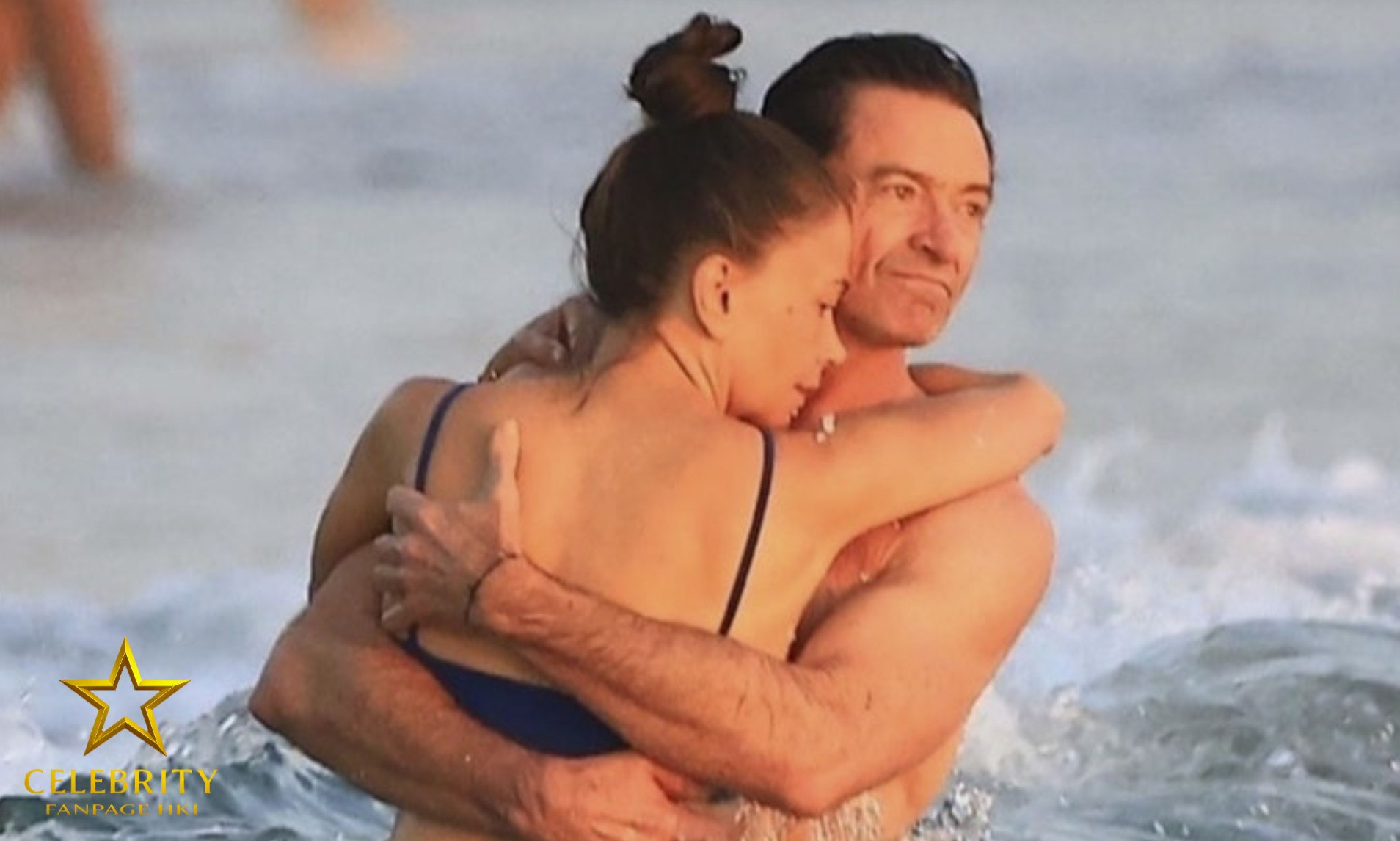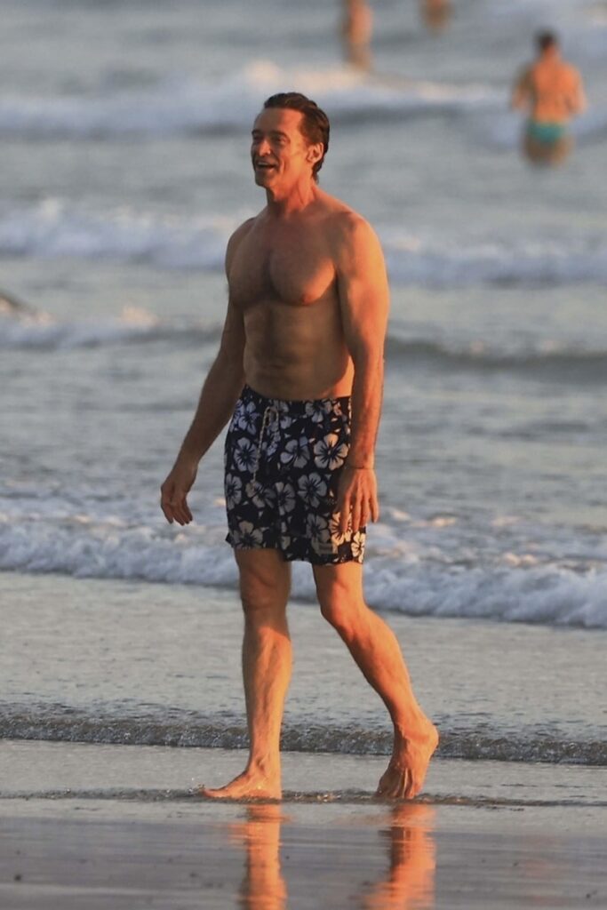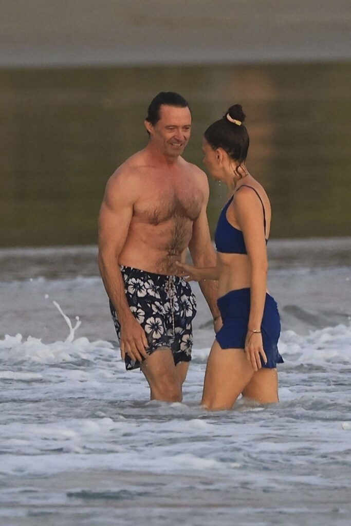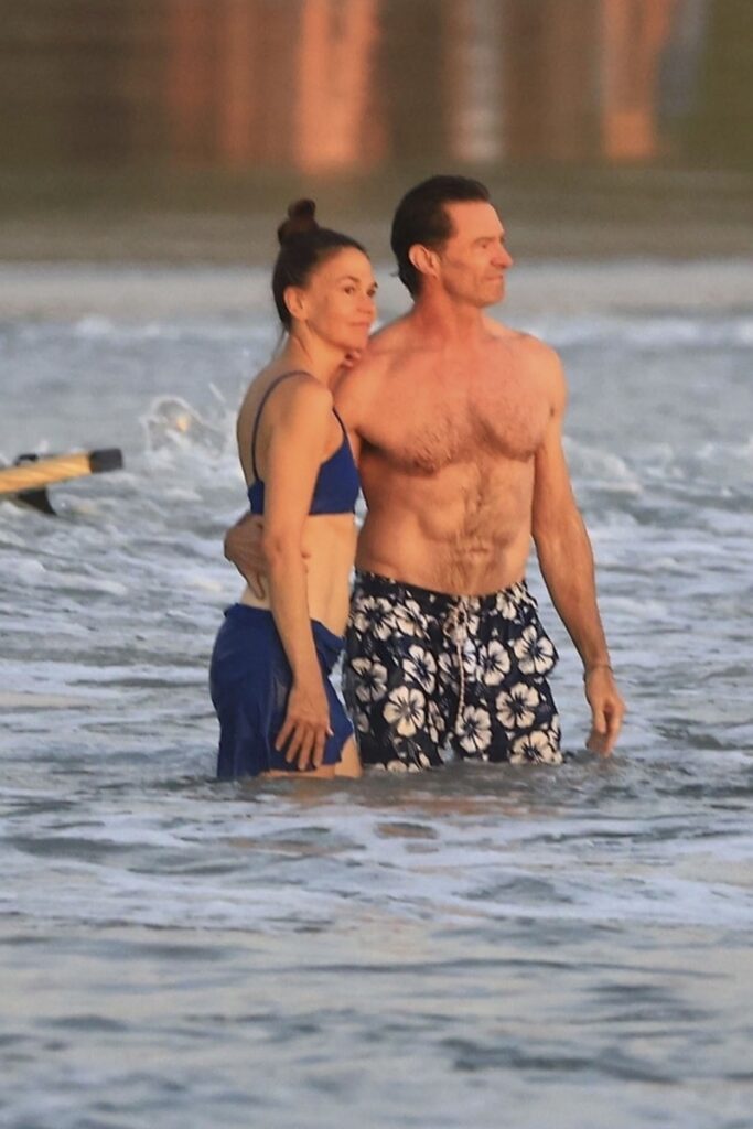 Hugh Jackman, de ‘The Music Man’, encanta a namorada Sutton Foster… e trocam carícias na praia.