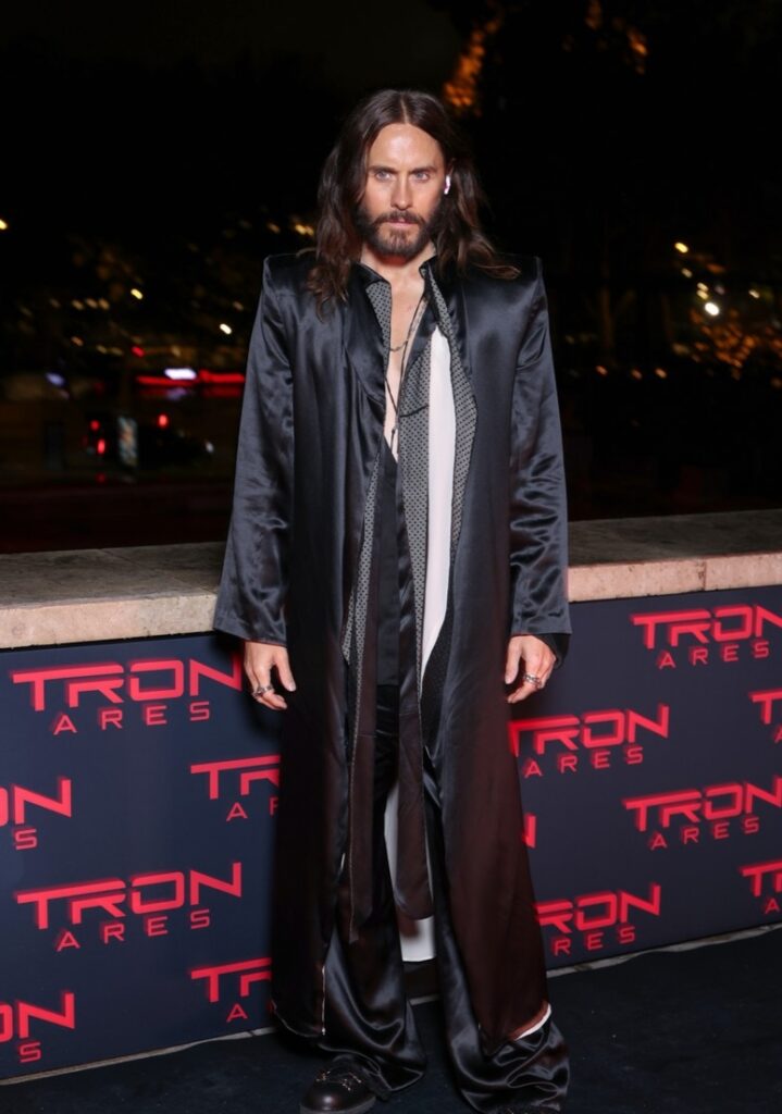 Jared Leto se juntou às colegas de elenco Jodie Turner-Smith e Greta Lee na sessão de fotos do novo filme da Disney, TRON: Ares, na noite de quarta-feira (24 de setembro), realizada no Palais de Tokyo, em Paris, França.