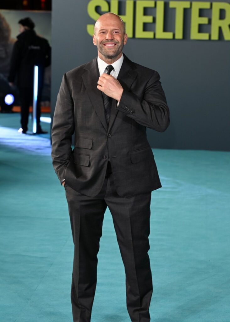 Jason Statham recebe o apoio de sua namorada de longa data, Rosie Huntington-Whiteley, na estreia de ‘Shelter’ em Londres!